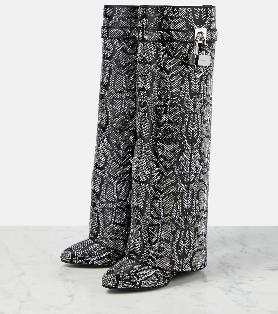 Upper: fabric. Lining: fabric. Sole: leather insole and sole. Toe shape: almond toe. Made in Italy. Includes: shoe box, dust bags. Designer color name: Grey/Natural. Hardware color: silver. Shop the latest Givenchy High-Heel Boots for women now.