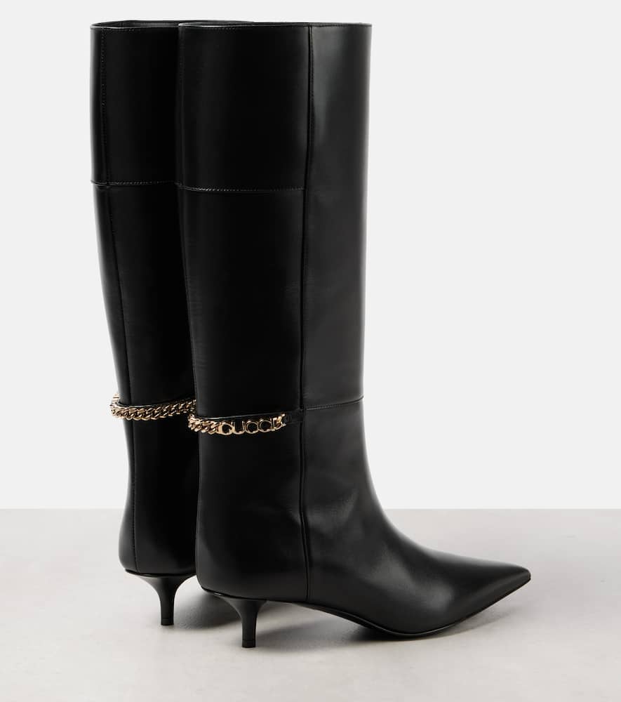 Upper: leather. Lining: leather. Sole: leather insole and sole. Toe shape: pointed toe. Made in Italy. Includes: shoe box, dust bags. Designer color name: Black. Closure: zipped side. Hardware color: gold. Shop the latest Gucci Mid-Heel Boots for women now.