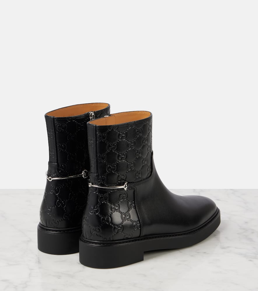 Upper: leather. Lining: leather. Sole: rubber insole and sole. Toe shape: almond toe. Made in Italy. Includes: shoe box, dust bags. Designer color name: Black/Black. Closure: zipped side. Hardware color: silver. Shop the latest Gucci Ankle Boots for women now.
