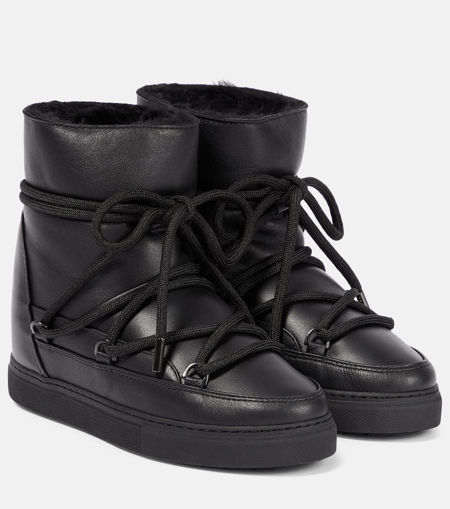 Upper: leather. Lining: shearling. Sole: shearling insole, rubber sole. Toe shape: round toe. Handmade in Portugal. Includes: shoe box. Designer color name: Black. Closure: lace-up. Hardware color: silver. Shop the latest Inuikii Ankle Boots for women now.
