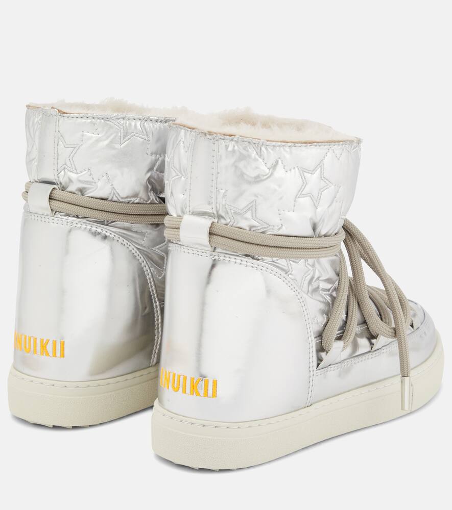 Upper: fabric. Lining: leather. Sole: leather insole, rubber sole. Toe shape: round toe. Made in Portugal. Includes: shoe box. Designer color name: Silver. Closure: lace-up. Shop the latest Inuikii Ankle Boots for women now.