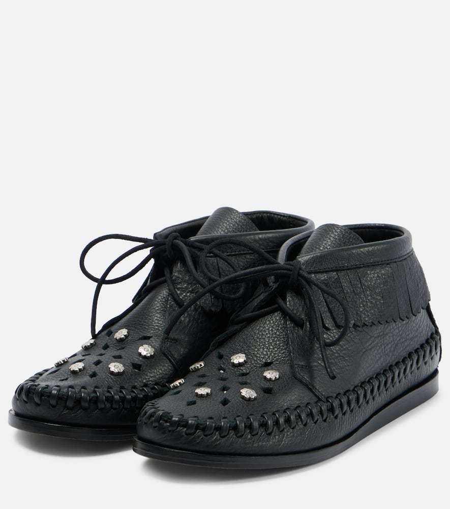 Upper: leather. Lining: leather. Sole: leather insole and sole. Toe shape: round toe. Made in Italy. Includes: shoe box, dust bag. Designer color name: Black. Closure: lace-up. Shop the latest Isabel Marant Flat Boots for women now.