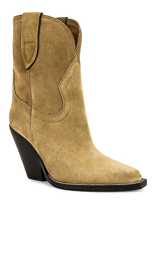 Isabel Marant Leyane Bootie in Beige. - size 35 (also in 36, 37, 40) Isabel Marant Leyane Bootie in Beige. - size 35 (also in 36, 37, 40) Calf velvet upper with cow leather sole. Made in Italy. Pull-on styling with side tabs. Calf leather lining. Tapered toe with stacked wooden block heel. Approx 89mm/ 3.5 inch heel Approx 165mm/ 6.5 inch shaft. IMAR-WZ182. 00MBO0760-00M028S. The pioneer spirit - During the brand's early days, a unique silhouette is born: the contemporary Parisian girl. Products that became iconic, simple yet effective. The brand is ahead of its time, with an outsider state of mind, always a bit off the road. Shop the latest in fashion from Isabel Marant