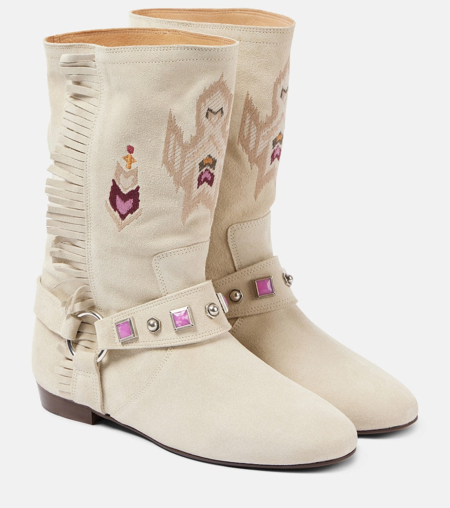 Isabel Marant Siani fringed embroidered suede ankle boots