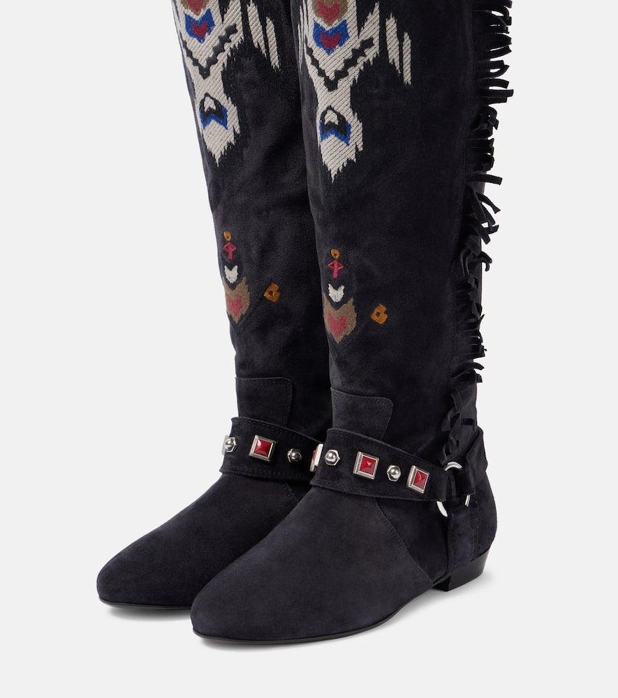 Upper: suede. Lining: leather. Sole: leather insole and sole. Toe shape: round toe. Made in Portugal. Includes: shoe box, dust bags. Designer color name: Faded Black. Hardware color: silver. Shop the latest Isabel Marant Flat Boots for women now.