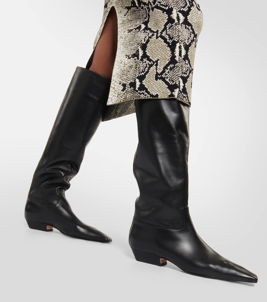 Sole: leather insole and sole. Toe shape: pointed toe. Upper: leather. Comes with a box. Designer color name: Black. Made in Italy. Comes with dust bag. Shop the latest Khaite Flat Boots for women now.