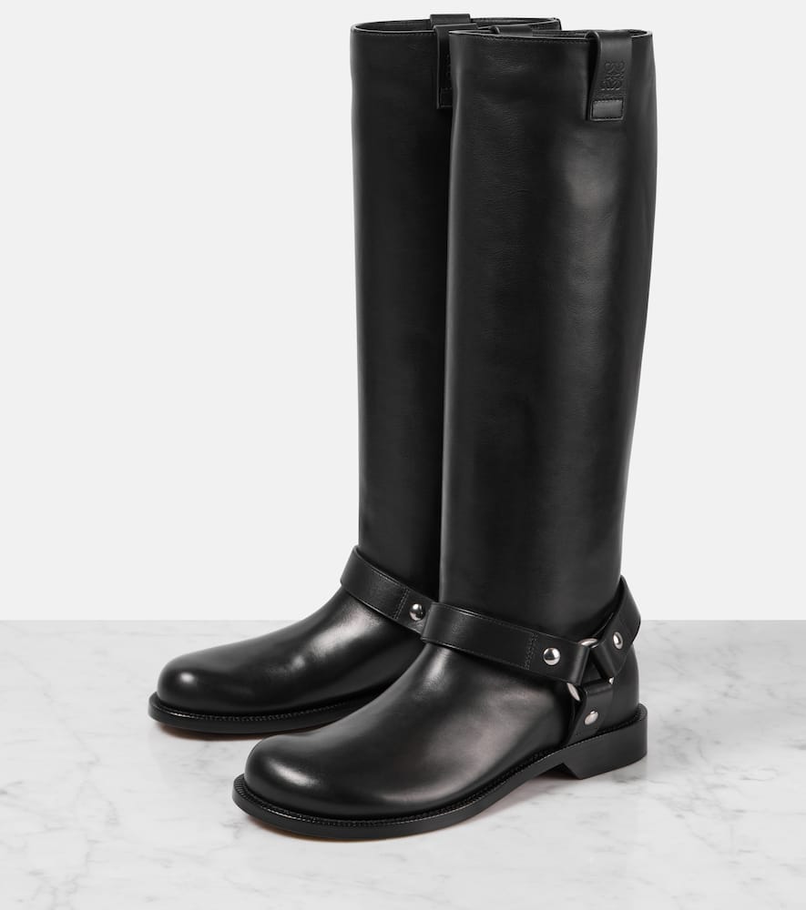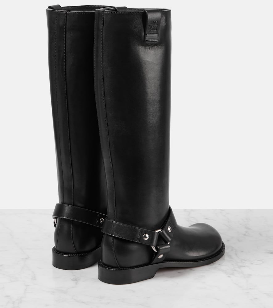 Upper: leather. Lining: leather. Sole: leather insole, rubber sole. Toe shape: round toe. Made in Italy. Includes: dust bag, shoe box. Designer color name: Black. Hardware color: silver. Shop the latest Loewe Flat Boots for women now.