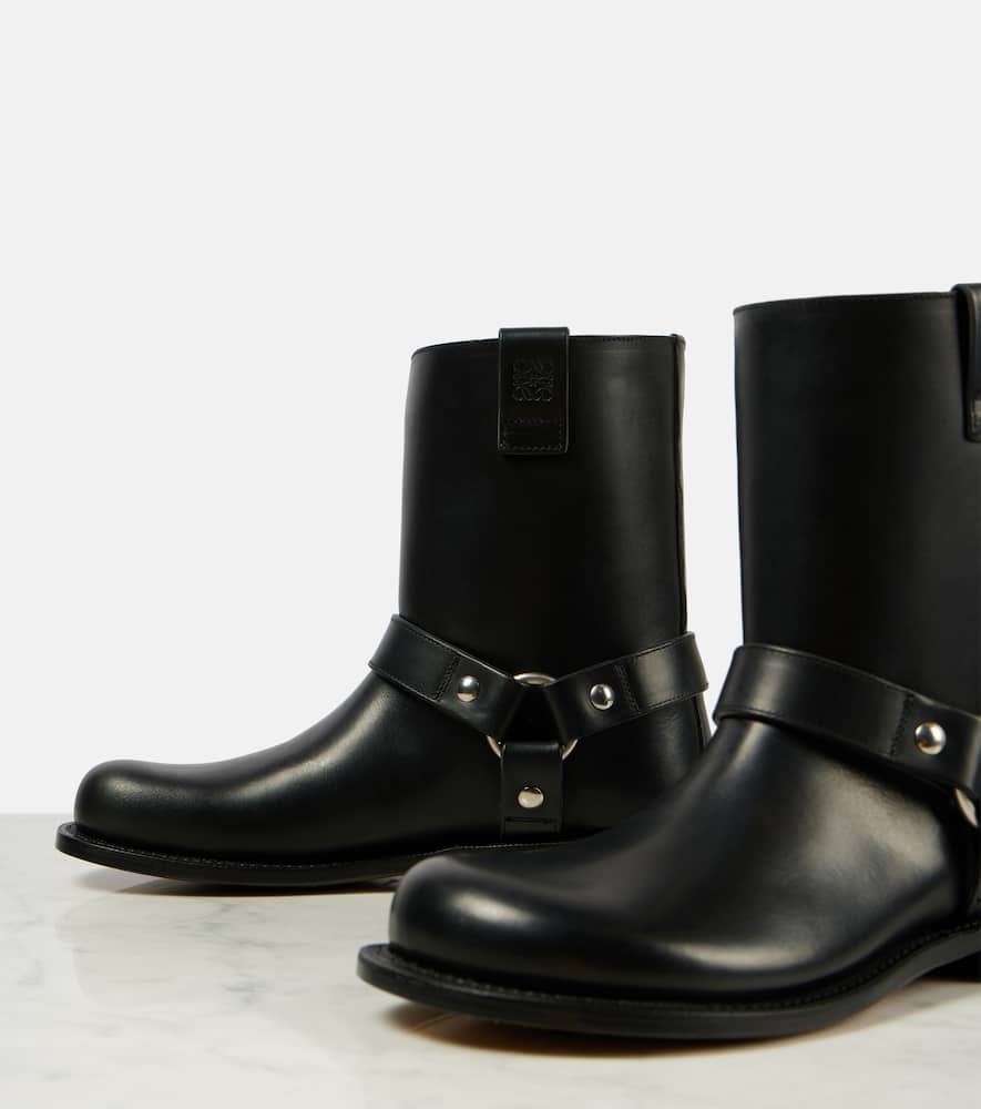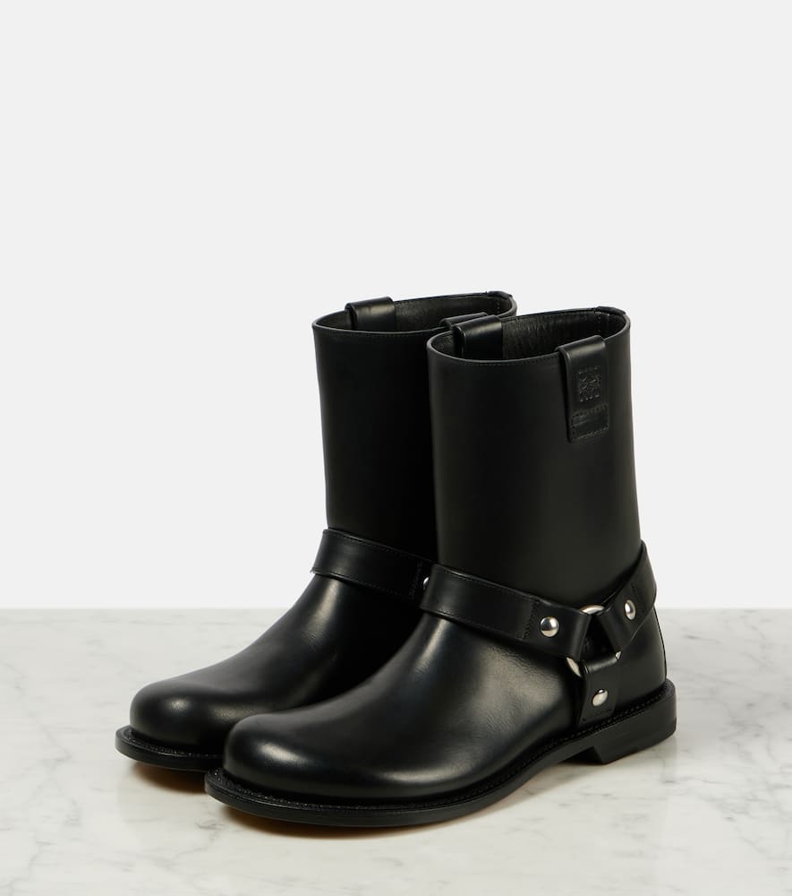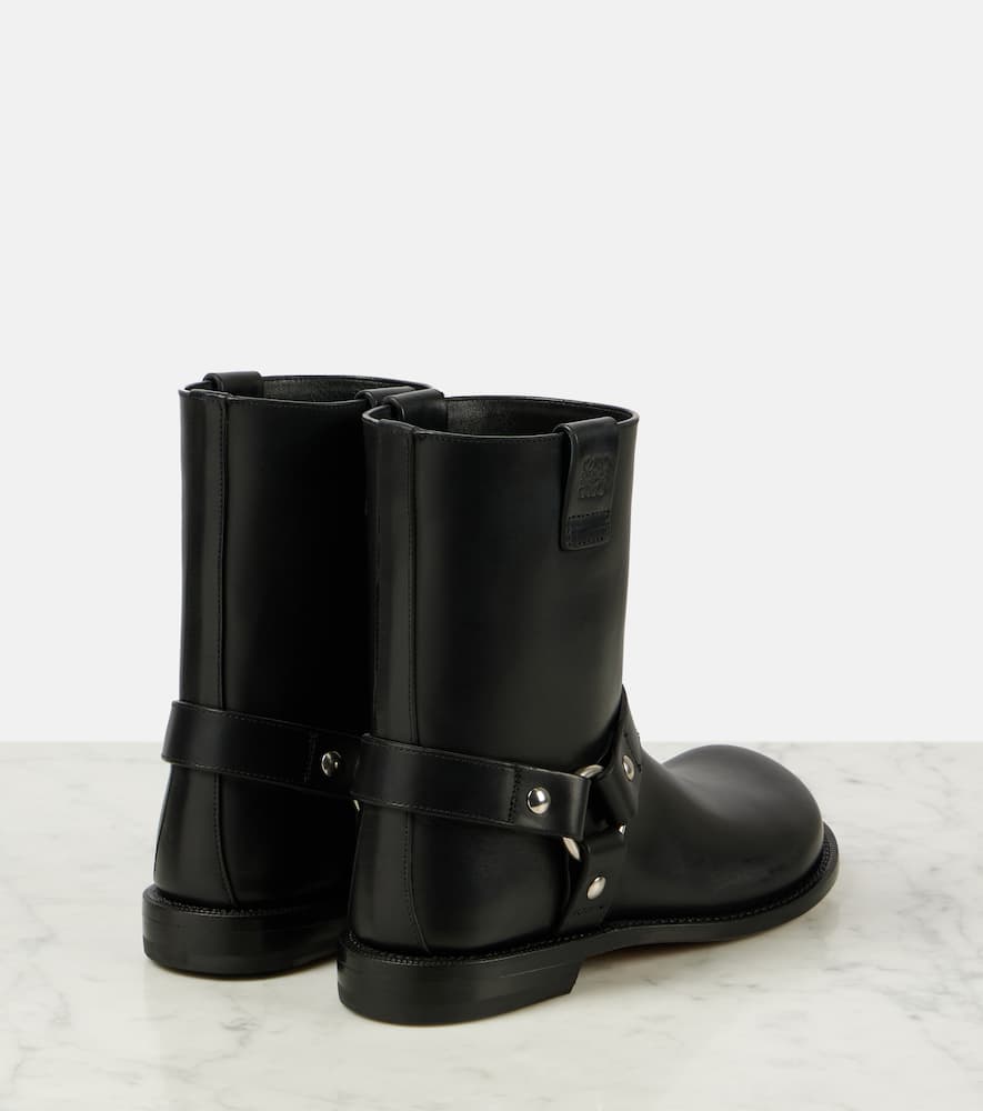 Upper: calf leather. Lining: leather. Sole: leather insole and sole. Toe shape: round toe. Made in Italy. Includes: shoe box, dust bags. Designer color name: Black. Hardware color: silver. Shop the latest Loewe Flat Boots for women now.