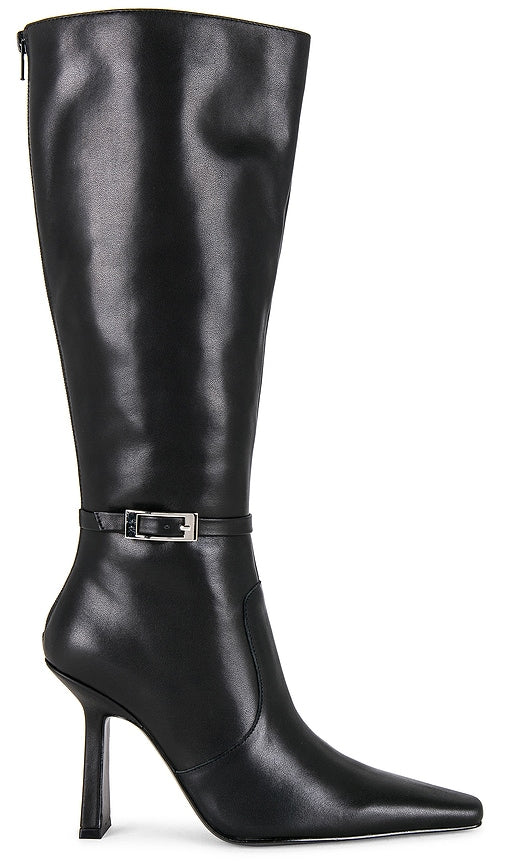Leather upper with manmade sole. Imported. Back zipper closure. Adjustable buckle strap. Pointed toe. Approx 100mm/ 4 inch heel Approx 355mm/ 14 inch shaft. LPAR-WZ164. LPSH219 H23. Meet LPA - The coveted label designed by Lara Pia Baroncini, for the quintessential cool girl with a raw, unapologetic attitude. The line oozes Italian romance, effortless California cool, and a casual tomboy appeal. Cut from satins and silks to cashmere and wool blends, featuring feminine shapes with flattering drapes, the eponymous ready-to-wear label is made with love for bad chicks. Color: Black Calf. Shop Black Calf Black Boots for women and the latest LPA shoes now.