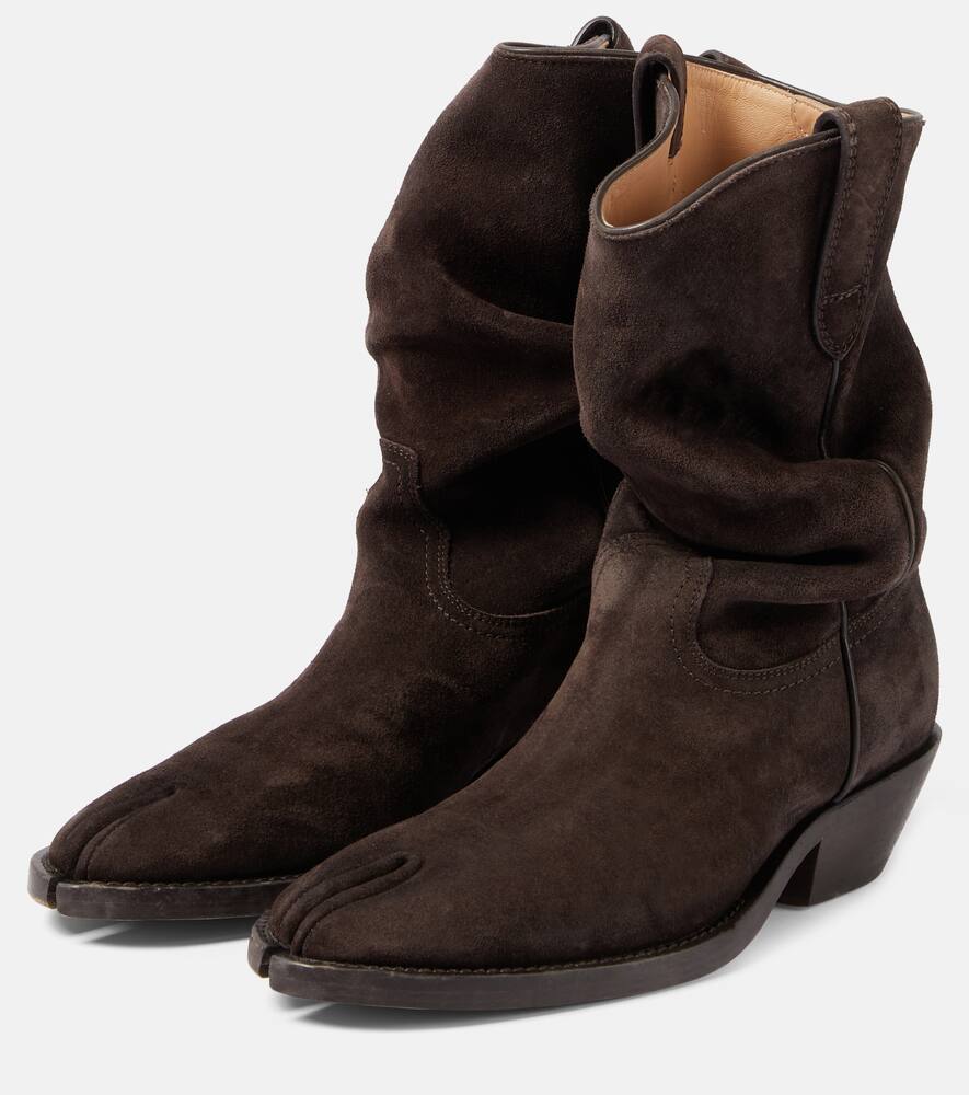 Upper: calf leather. Lining: leather. Sole: leather insole and sole. Toe shape: round toe. Made in Italy. Includes: shoe box, dust bag. Designer color name: Dark Brown. Shop the latest Maison Margiela Mid-Heel Boots for women now.