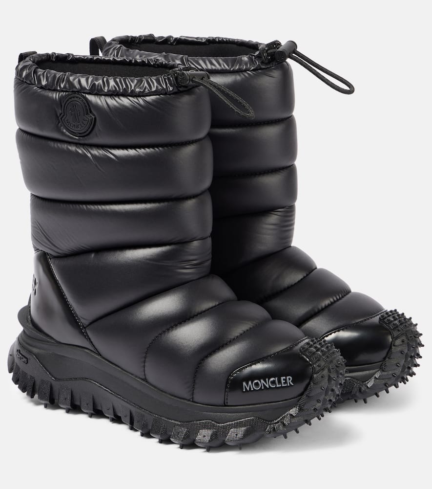 Upper: fabric. Lining: leather. Sole: leather insole, rubber sole. Toe shape: round toe. Made in Vietnam. Includes: shoe box, dust bag. Designer color name: Black. Closure: elasticated strap. Shop the latest Moncler Flat Boots for women now.