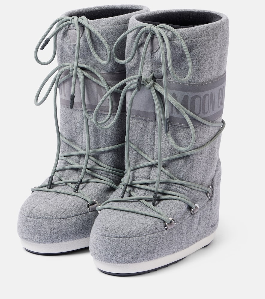 Upper: fabric. Lining: fabric. Sole: fabric insole, rubber sole. Toe shape: round toe. Made in Romania. Includes: shoe box. Designer color name: H006 Grey. Closure: lace-up. Shop the latest Moon Boot Flat Boots for women now.