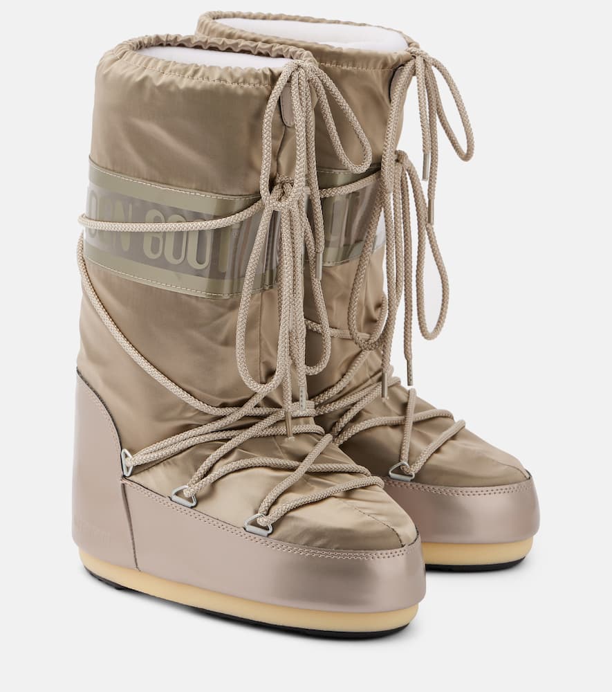 Upper: fabric. Lining: fabric. Sole: fabric insole, rubber sole. Toe shape: round toe. Made in Romania. Includes: shoe box, dust bag. Designer color name: B003 Platinum. Trim: rubber. Closure: lace-up, drawstring. Shop the latest Moon Boot Flat Boots for women now.