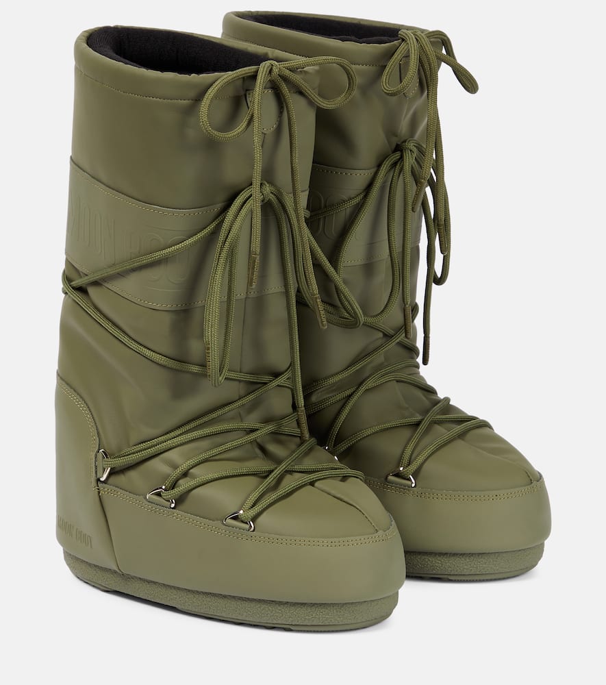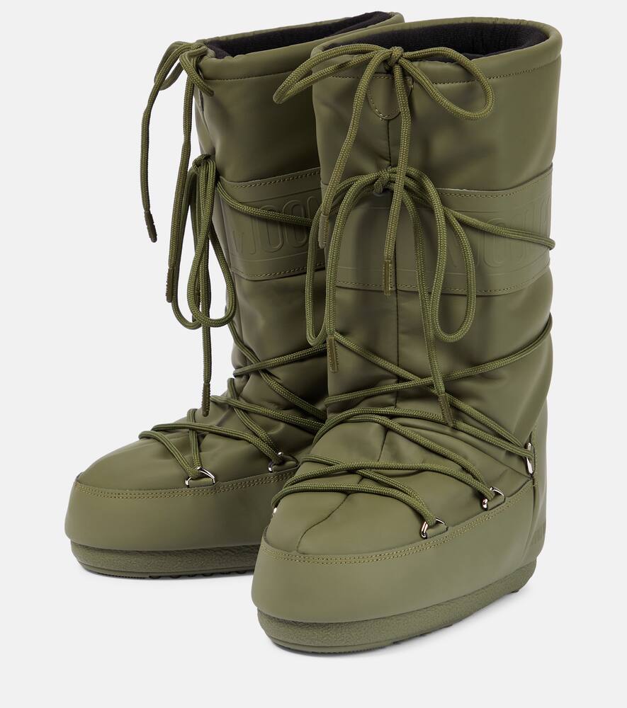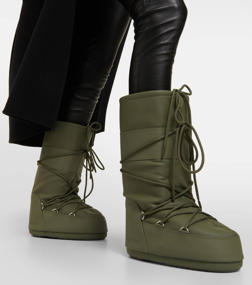 Upper: fabric. Lining: fabric. Sole: fabric insole, rubber sole. Toe shape: round toe. Made in Romania. Designer color name: Khaki. Closure: lace-up. Shop the latest Moon Boot Flat Boots for women now.