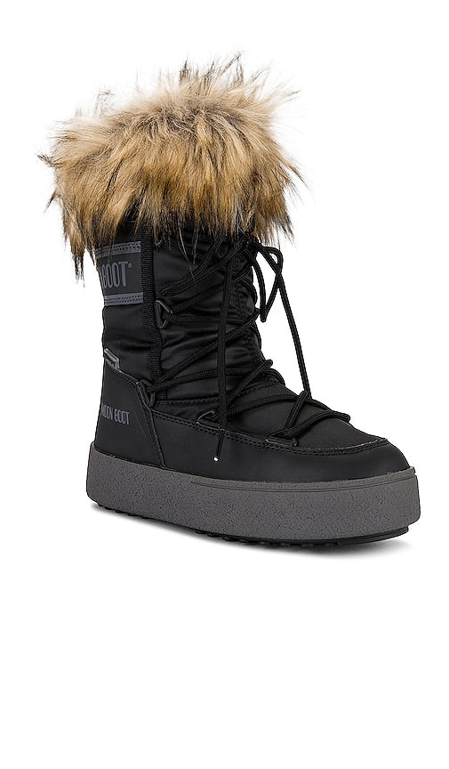MOON BOOT Track Monaco Low Boot in Black. - size 36 (also in 38) MOON BOOT Track Monaco Low Boot in Black. - size 36 (also in 38) Nylon and textile upper with faux fur trim and rubber sole. Made in China. Wraparound tie closure. Thermoplastic mid sole. Thermoplastic rubber tread sole. Moon Boot logo at shaft. Approx 32mm/ 1.25 inch platform Approx 205mm/ 8 inch shaft. MBOO-WZ40. 24500600PR. Shop the latest in fashion from MOON BOOT