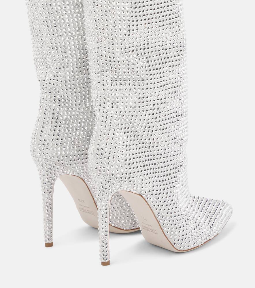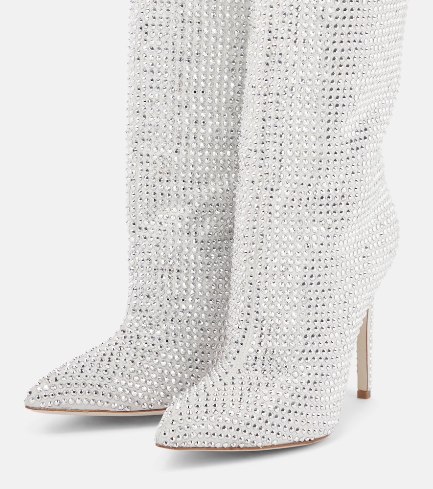 Trim: crystals. Lining: leather. Sole: leather insole and sole. Upper: goat leather. Toe shape: pointed toe. Designer color name: Silver Diamond. Comes with dust bags. Comes with a box. Made in Italy. Shop the latest Paris Texas Mid-Heel Boots for women now.