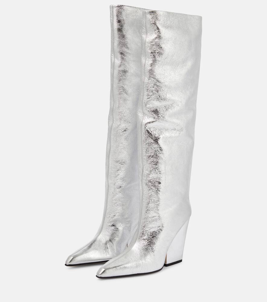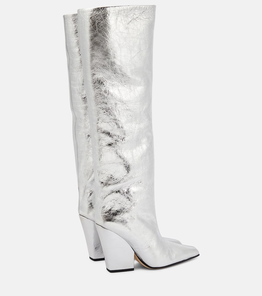 Sole: leather insole and sole. Toe shape: pointed toe. Upper: leather. Comes with a box. Designer color name: Silver. Made in Italy. Comes with dust bag. Shop the latest Paris Texas High-Heel Boots for women now.