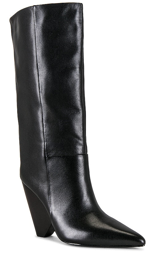 RAYE Angle Boot in Black. - size 10 (also in 5.5, 6, 7, 8, 8.5) RAYE Angle Boot in Black. - size 10 (also in 5.5, 6, 7, 8, 8.5) Leather upper with leather sole. Made in China. Pull-on styling. Leather footbed and lining. Pointed toe with structural heel. Approx 108mm/ 4.25 inch heel Approx 286mm/ 11.25 inch shaft Shaft measures approx 10.20 in circumference. RAYE-WZ2421. RYSH1166 F22. Inspired by the word Reina, the Spanish word for queen, Raye is the queen bee shoe brand that will surely capture your heart. With an extensive assortment of silhouettes from heels to boots and sandals to flats, Raye has that perfect something for everyone. Shop the latest in fashion from RAYE