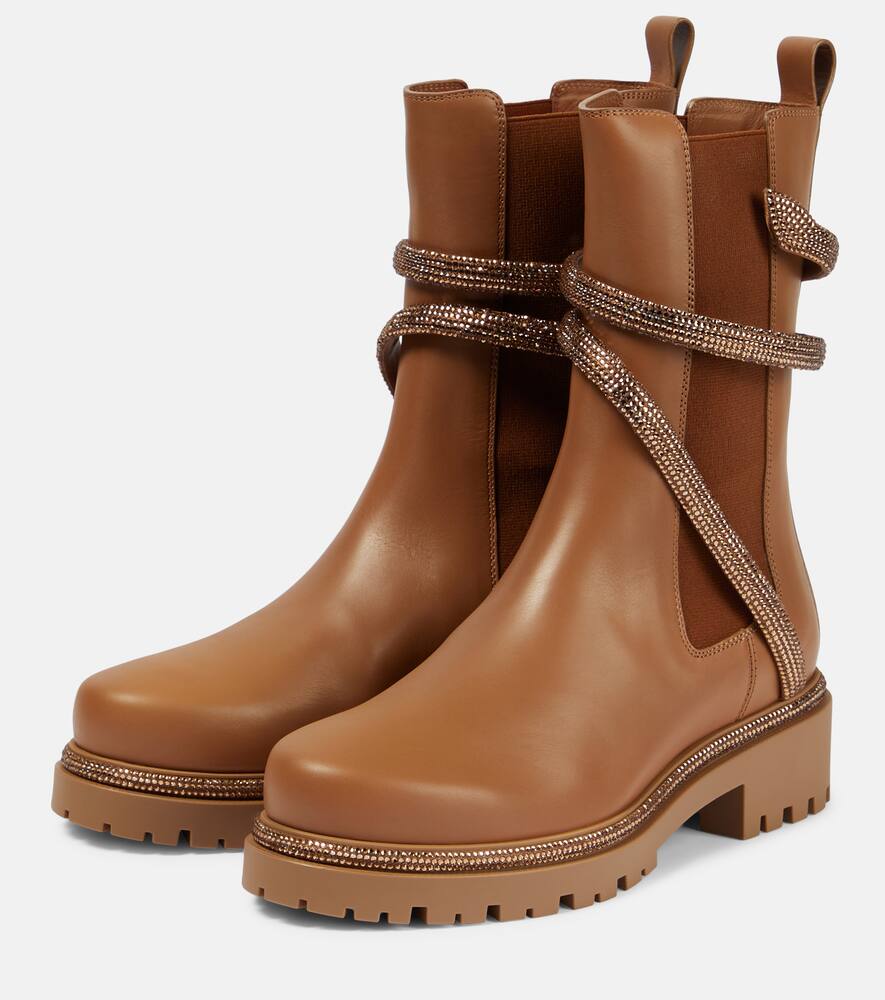 Lining: leather. Upper: fabric, leather. Sole: leather insole, rubber sole. Toe shape: round toe. Made in Italy. Designer color name: Brown Calf/L.Smoked Topaz. Comes with dust bag. Shop the latest Rene Caovilla Chelsea Boots for women now.