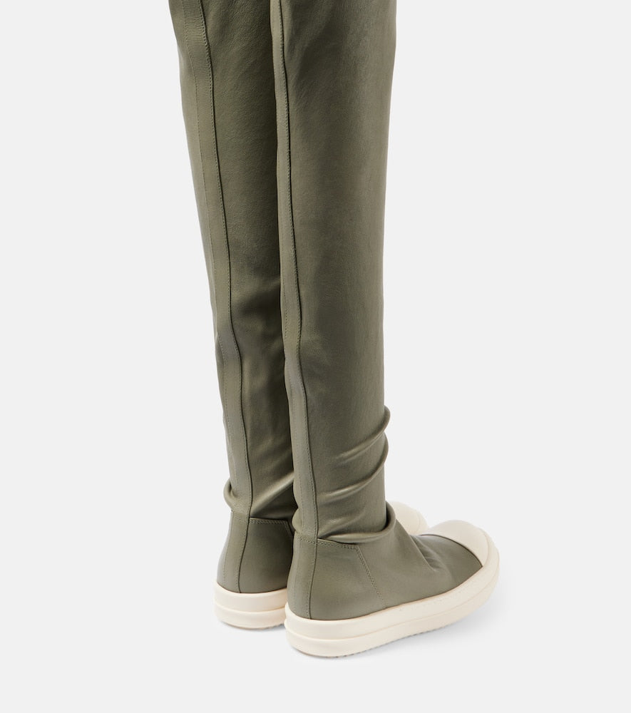 Upper: leather. Lining: fabric. Sole: leather insole, rubber sole. Toe shape: round toe. Made in Italy. Includes: dust bag. Designer color name: Celadon/ Milk/ Milk. Shop the latest Rick Owens Flat Boots for women now.