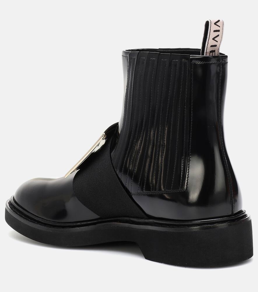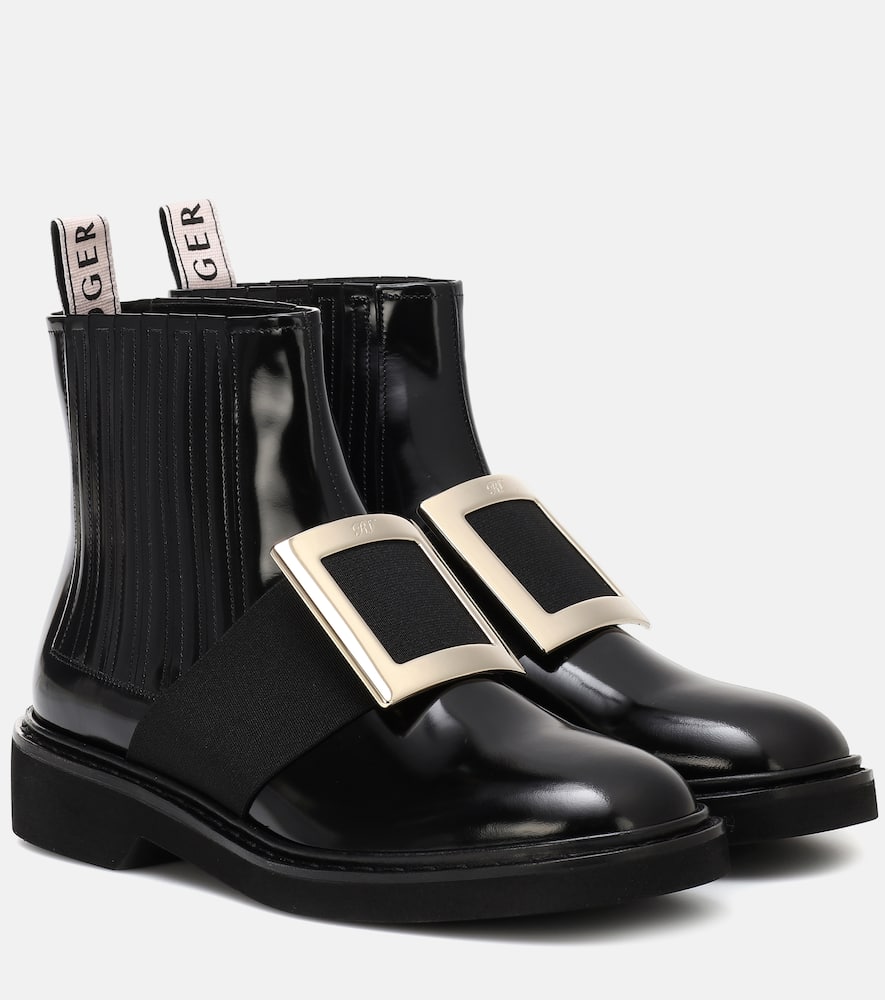 Upper: leather. Lining: leather. Sole: leather insole, rubber sole. Toe shape: round toe. Made in Italy. Includes: shoe box, dust bag. Designer color name: Nero. Closure: elasticated sides. Hardware color: gold. Shop the latest Roger Vivier Chelsea Boots for women now.