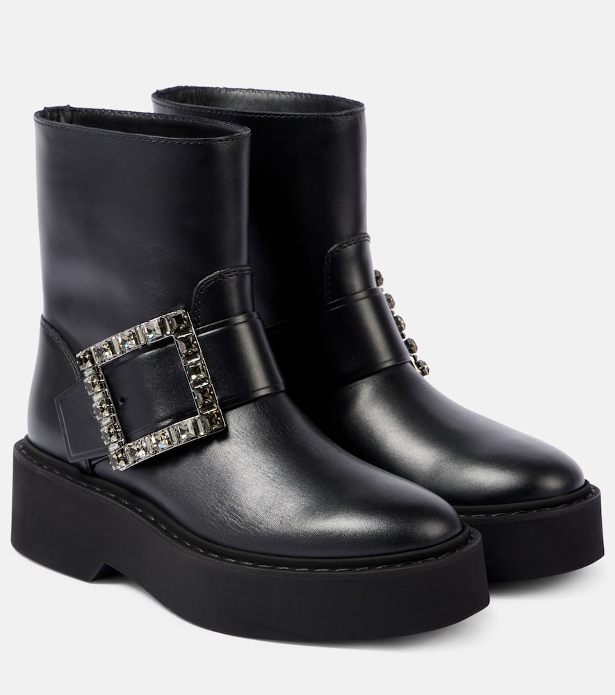 Upper: calf leather. Lining: leather. Sole: leather insole, rubber sole. Toe shape: round toe. Made in Italy. Includes: shoe box, dust bag. Designer color name: Nero. Hardware color: silver. Shop the latest Roger Vivier Ankle Boots for women now.