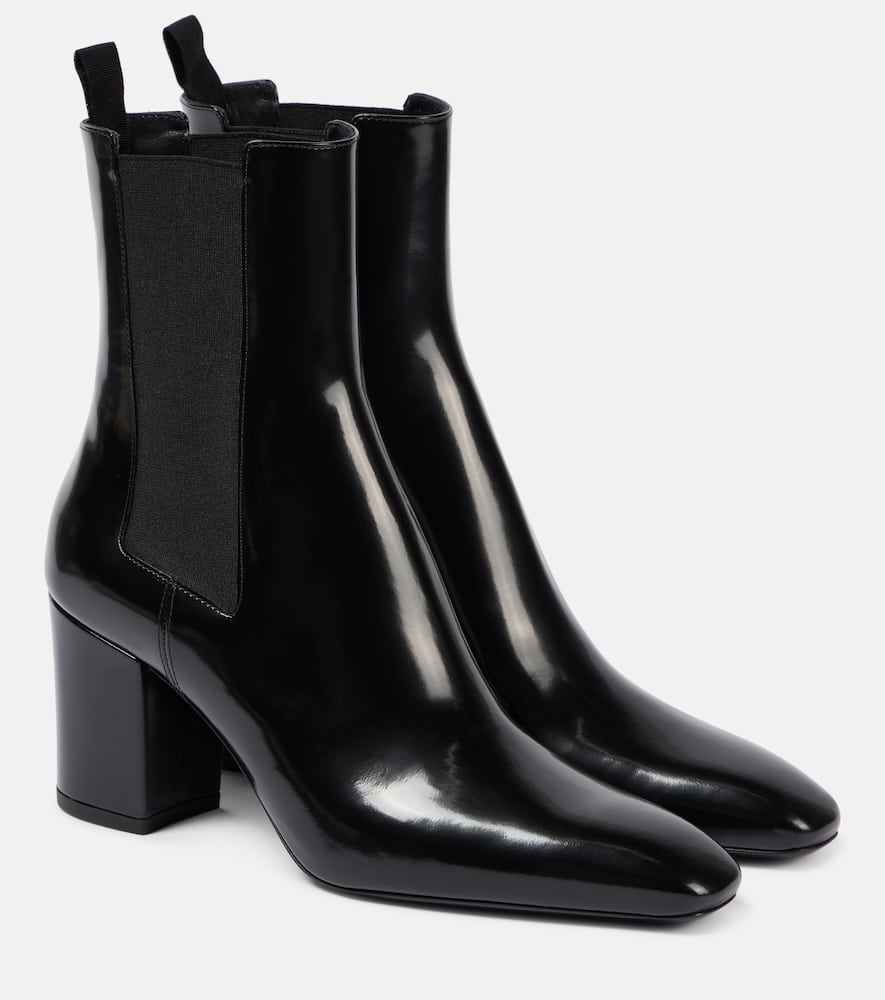 Upper: leather. Lining: leather. Sole: leather insole and sole. Toe shape: pointed toe. Made in Italy. Includes: shoe box, dust bags. Designer color name: Noir. Trim: fabric. Shop the latest Saint Laurent Mid-Heel Boots for women now.