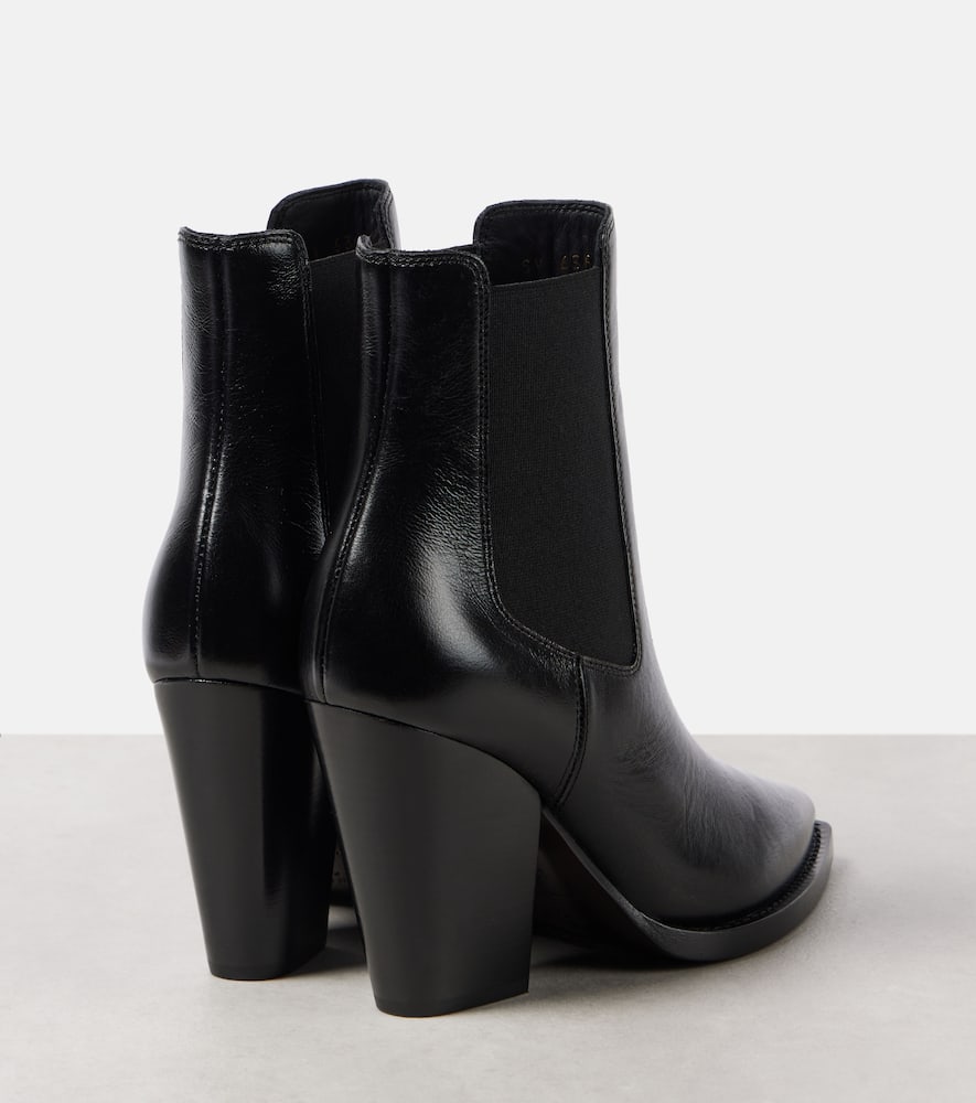Upper: calf leather. Lining: leather. Sole: leather insole and sole. Toe shape: square toe. Made in Italy. Includes: shoe box. Designer color name: Noir. Trim: fabric. Closure: elasticated sides. Shop the latest Saint Laurent Chelsea Boots for women now.