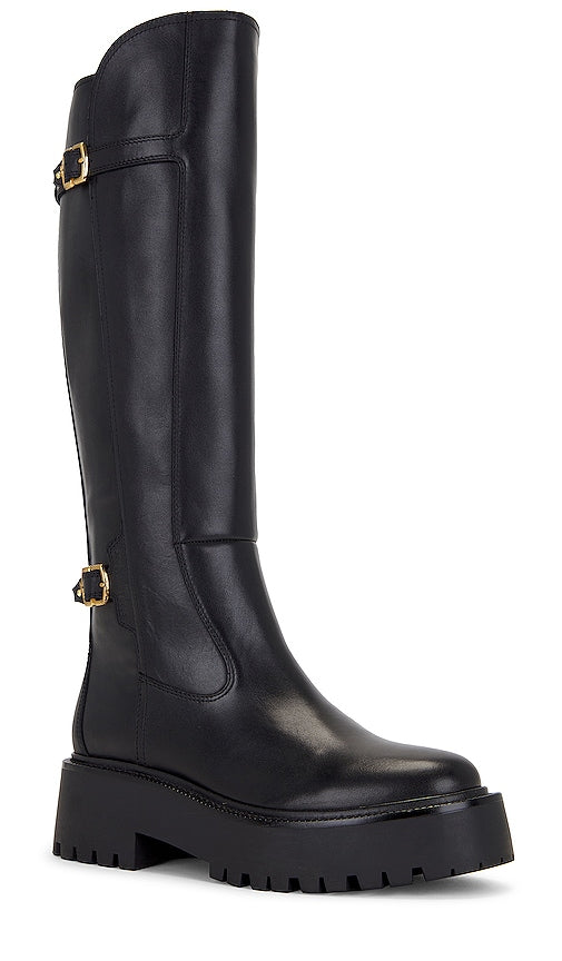 Sam Edelman Elayna Boot in Black. - size 6 (also in 10, 6.5, 7, 7.5, 9, 9.5) Sam Edelman Elayna Boot in Black. - size 6 (also in 10, 6.5, 7, 7.5, 9, 9.5) Leather upper with rubber sole. Imported. Side zipper closure. Textile lining. Brushed buckled detailing at side. Almond toe with chunky lug sole. Approx 50mm/ 2 inch heel Approx 32mm/ 1.25 inch platform Approx 381mm/ 15 inch shaft Shaft measures approx 12.56 in circumference. SAME-WZ1033. I7706L1. Sam Edelman is a lifestyle brand devoted to a trend-on, irreverent and whimsical style. Inspired by timeless American elegance, the brand offers a unique selection of iconic and contemporary fashion that bridges the gap between aspiration and attainability to define modern luxury. Shop the latest in fashion from Sam Edelman