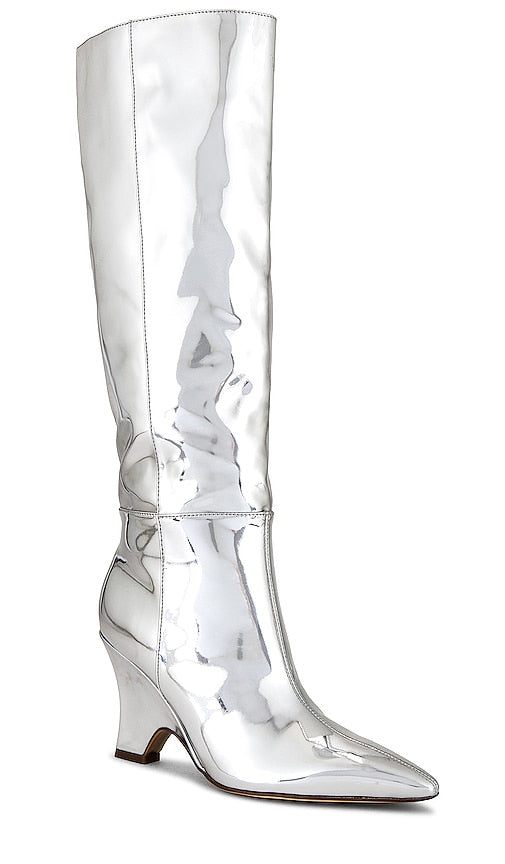 Sam Edelman Vance 2 Boot in Metallic Silver. - size 6 (also in 6.5, 7.5, 8.5) Sam Edelman Vance 2 Boot in Metallic Silver. - size 6 (also in 6.5, 7.5, 8.5) Liquid metal polyurethane upper with leather sole. Suede lining. Imported. Partial side zipper closure. Squared pointed toe. Thick spool heel. Approx 83mm/ 3.25 inch heel Approx 393 mm/ 15.5 inch shaft Shaft measures approx 14 in circumference. SAME-WZ1024. I7956S1020. Sam Edelman is a lifestyle brand devoted to a trend-on, irreverent and whimsical style. Inspired by timeless American elegance, the brand offers a unique selection of iconic and contemporary fashion that bridges the gap between aspiration and attainability to define modern luxury. Shop the latest in fashion from Sam Edelman