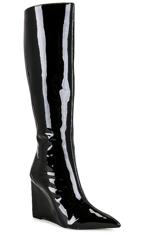 Schutz Asya Up Boot in Black. - size 6 (also in 6.5, 7, 7.5, 8, 8.5, 9, 9.5) Schutz Asya Up Boot in Black. - size 6 (also in 6.5, 7, 7.5, 8, 8.5, 9, 9.5) Patent leather upper with leather sole. Made in Brazil. Side zipper closure. Faux leather footbed and lining. Pointed toe with wedge heel. Approx 95mm/ 3.75 inch wedge Approx 381mm/ 15 inch shaft. SCHU-WZ1345. 212290004_0124_PK. Founded in 1995 by Alexandre Birman, Schutz has redefined attainable luxury, trend-forward footwear. With each new release, Schutz delivers the most of-the-moment collections that are the hero pieces around which entire outfits are built. Defined by confident, bold, and purpose-driven attitude, Schutz shoes lead the conversation, delivering fashion at your feet, one head-turning pair at a time. In her Schutz, she can conquer anything Shop the latest in fashion from Schutz