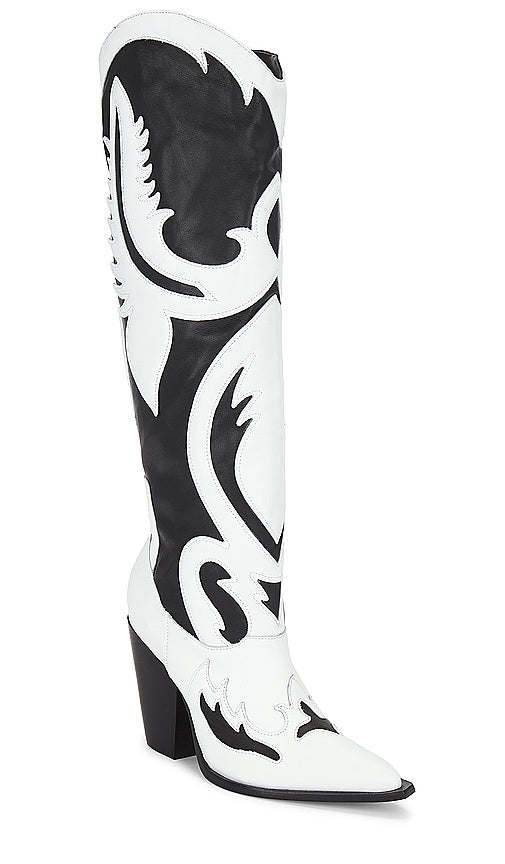 Schutz Woody Up Casual Boot in Black,White. - size 10 (also in 6, 6.5, 7.5, 8, 8.5, 9.5) Schutz Woody Up Casual Boot in Black,White. - size 10 (also in 6, 6.5, 7.5, 8, 8.5, 9.5) Leather upper with leather sole. Made in Brazil. Partial side zipper closure. Leather footbed and lining. Western inspired stitching throughout. Pointed toe with wooden block heel. Approx 95mm/ 3.75 inch heel Approx 375mm/ 14.75 inch shaft Shaft measures approx 15.7 in circumference. SCHU-WZ1415. S2171700090001. Founded in 1995 by Alexandre Birman, Schutz has redefined attainable luxury, trend-forward footwear. With each new release, Schutz delivers the most of-the-moment collections that are the hero pieces around which entire outfits are built. Defined by confident, bold, and purpose-driven attitude, Schutz shoes lead the conversation, delivering fashion at your feet, one head-turning pair at a time. In her Schutz, she can conquer anything Shop the latest in fashion from Schutz