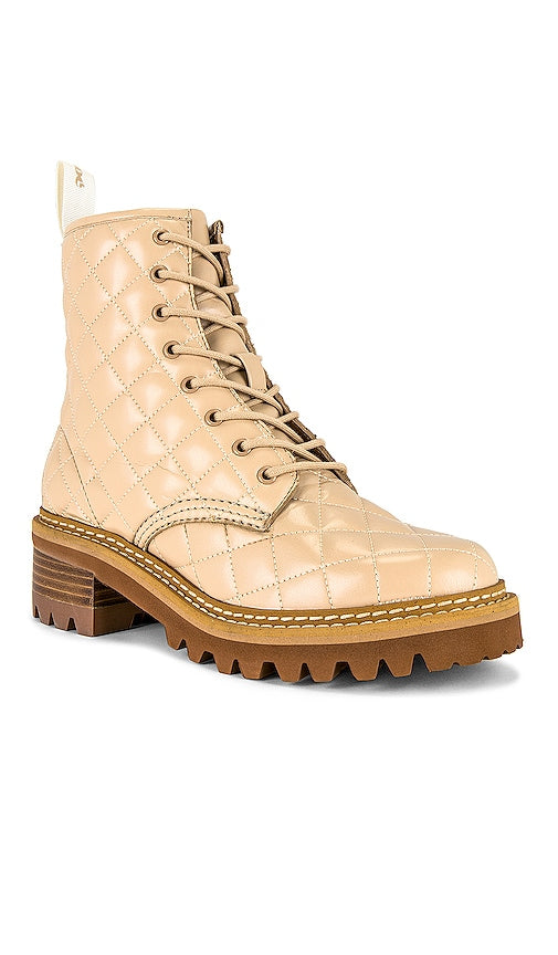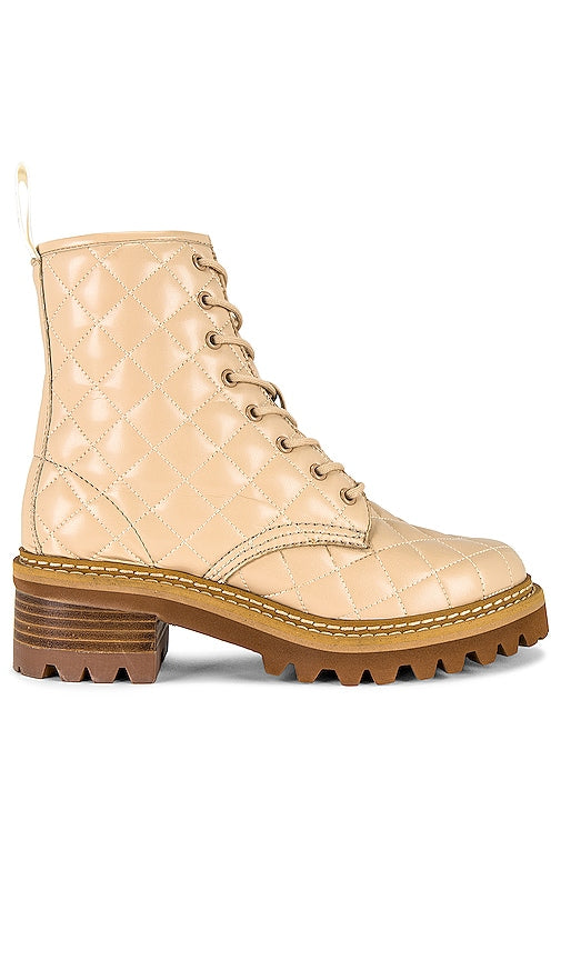 See By Chloe Jodie Boot in Beige. - size 36 (also in 37, 38) See By Chloe Jodie Boot in Beige. - size 36 (also in 37, 38) Quilted leather upper with rubber sole. Made in Spain. Lace-up front. Logo grosgrain back pull tab. Almond toe with lug sole. Approx 50mm/ 2 inch heel Approx 13mm/ 0.75 inch platform Approx 140mm/ 5.5 inch shaft. SEEB-WZ359. SB41062A-18095. Launched in 2001, See by Chloe is a more relaxed and casual response to the success of the pieces to its elegant sister brand Chloe. See by Chloe has grown into a complete ready-to-wear line that has found favor by adding an urban edge to feminine tailoring. Shop the latest in fashion from See By Chloe