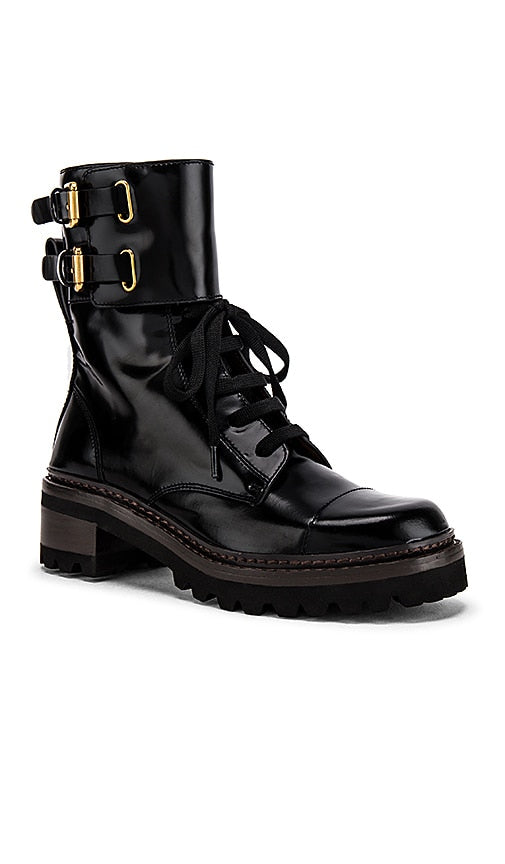 See By Chloe Mallory Biker Ankle Boot in Black. - size 35 (also in 35.5) See By Chloe Mallory Biker Ankle Boot in Black. - size 35 (also in 35.5) Leather upper with man made sole. Lace-up front. Side zipper closure. Ankle strap with buckle closure. Heel measures approx 2 H Shaft measures approx 7 H. Imported. SEEB-WZ200. SB33080A-12280. Launched in 2001, See by Chloe is a more relaxed and casual response to the success of the pieces to its elegant sister brand Chloe. See by Chloe has grown into a complete ready-to-wear line that has found favor by adding an urban edge to feminine tailoring. Shop the latest in fashion from See By Chloe