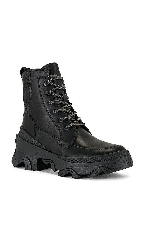 Sorel Brex Boot in Black. - size 6 (also in 7.5, 8) Sorel Brex Boot in Black. - size 6 (also in 7.5, 8) Leather and textile upper with rubber sole. Made in China. Lace-up front. Gore side panels. Back pull-tab. Embossed Sorel logo at back counter. Approx 57mm/ 2.25 inch heel Approx 40mm/ 1.5 inch platform Approx 125mm/ 5 inch shaft. SORE-WZ91. 1951211. Founded by social entrepreneur and travel writer Leila Janah, Sorels are functional, beautifully crafted boots created for those who are not afraid to create, to accomplish, to do. They are made with purpose, for those with purpose. Shop the latest in fashion from Sorel