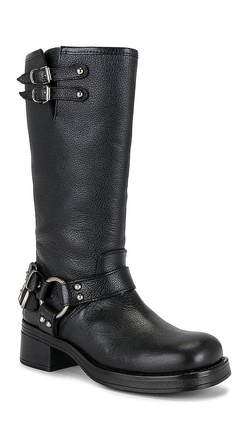 Steve Madden Astor Boot in Black. - size 10 (also in 6, 6.5, 7, 9, 9.5) Steve Madden Astor Boot in Black. - size 10 (also in 6, 6.5, 7, 9, 9.5) Leather upper with manmade sole. Made in Mexico. Pull-on styling. Leather footbed and lining. Antique silver-tone hardware and straps throughout. Rounded square toe with wooden block heel. Approx 50mm/ 2 inch heel Approx 292mm/ 11.5 inch shaft Shaft measures approx 13.34 in circumference. SMAD-WZ1234. ASTOR. The effortless west coast vibe of BB Dakota has now merged with the iconic Downtown edge of Steve Madden. Introducing Steve Madden Apparel... Inspired by confident women and its youthful New York City roots, Steve Madden apparel offers bold and disruptive, yet timeless essentials. Always at the forefront of trends and reinventing style season after season, Steve Madden apparel provides you with the tools you need to become your own fashion visionary. It's about authenticity. It's about embracing individuality. It's Steve Madden. Shop the latest in fashion from Steve Madden
