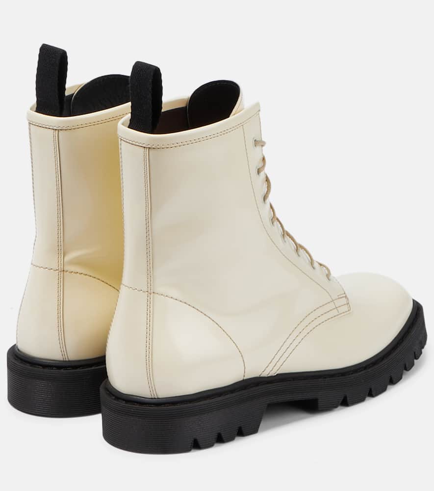Lining: leather. Toe shape: round toe. Sole: fabric insole, rubber sole. Upper: leather. Comes with a box. Designer color name: Eggshell. Closure: lace-up. Made in Italy. Comes with dust bags. Shop the latest The Row Ankle Boots for women now.
