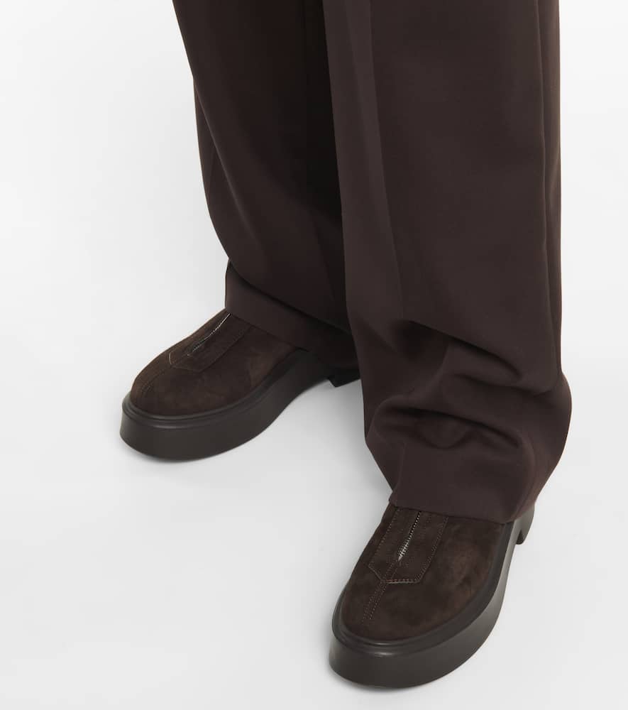 Upper: calf leather. Lining: leather. Sole: leather insole, rubber sole. Toe shape: round toe. Made in Italy. Includes: shoe box. Designer color name: Dark Brown. Closure: zipped fastening. Hardware color: silver. Shop the latest The Row Flat Boots for women now.