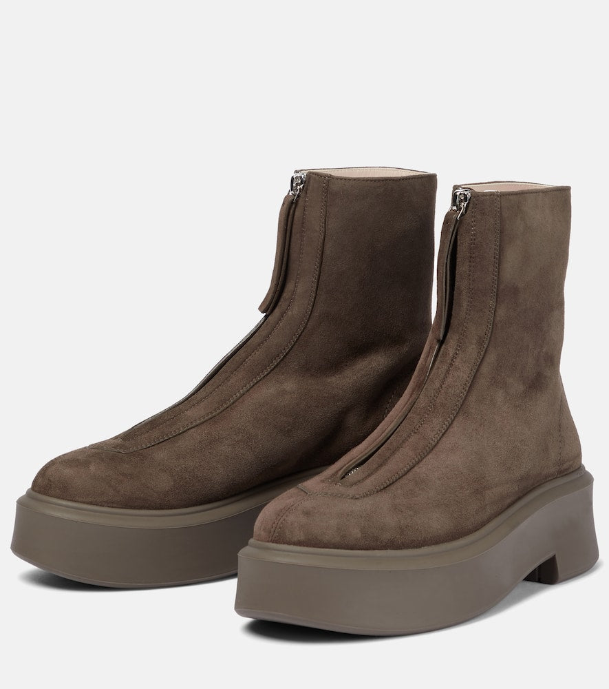 Lining: leather. Closure: zipped fastening. Sole: leather insole, rubber sole. Toe shape: round toe. Upper: calf leather. Designer color name: Ash. Made in Italy. Shop the latest The Row Ankle Boots for women now.