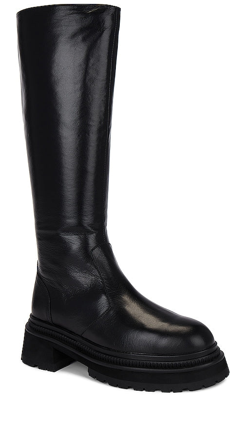 Tony Bianco Hitch Boot in Black. - size 7 (also in 7.5, 8.5, 9, 9.5) Tony Bianco Hitch Boot in Black. - size 7 (also in 7.5, 8.5, 9, 9.5) Leather upper with rubber sole. Made in China. Side zipper closure. Leather footbed and lining. Almond toe with chunky block heel. Approx 45mm/ 1.75 inch heel Approx 13mm/ 0.75 inch platform Approx 362mm/ 14.25 inch shaft Shaft measures approx 12.56 in circumference. TONR-WZ683. HITCH. Based out of Australia, the Tony Bianco brand embraces a mix of the contemporary, the classic, and the cool. Their signature can be seen in the use of high quality materials and a keen eye for detail that is used to create on-trend pieces that will survive the test of time. Shop the latest in fashion from Tony Bianco