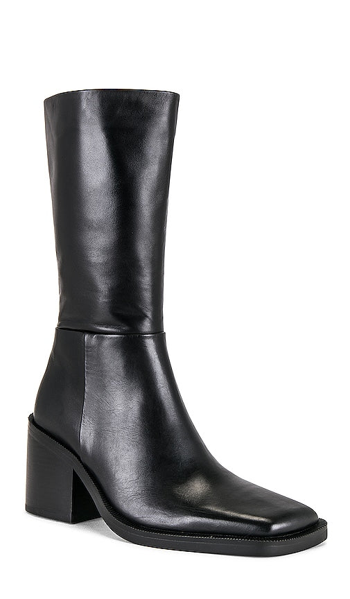 Tony Bianco Prestige Boot in Black. - size 5 (also in 5.5, 6.5, 7, 7.5, 8, 9) Tony Bianco Prestige Boot in Black. - size 5 (also in 5.5, 6.5, 7, 7.5, 8, 9) Leather upper with manmade sole. Made in China. Side zipper closure. Leather footbed and lining. Angled square toe with wooden block heel. Approx 75mm/ 3 inch heel Approx 260mm/ 10.25 inch shaft. TONR-WZ703. PRESTIGE. Based out of Australia, the Tony Bianco brand embraces a mix of the contemporary, the classic, and the cool. Their signature can be seen in the use of high quality materials and a keen eye for detail that is used to create on-trend pieces that will survive the test of time. Shop the latest in fashion from Tony Bianco