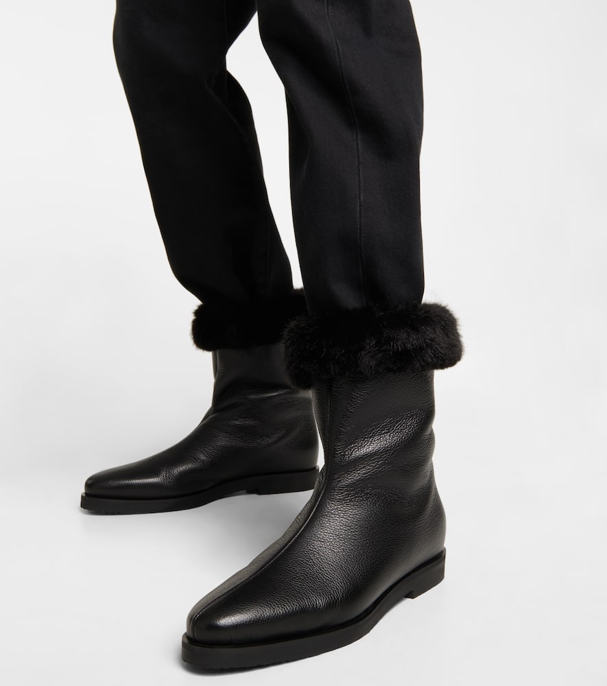 Upper: leather. Lining: faux fur. Sole: faux leather insole, rubber sole. Toe shape: almond toe. Made in Italy. Includes: shoe box, dust bag. Designer color name: Black. Shop the latest Toteme Ankle Boots for women now.