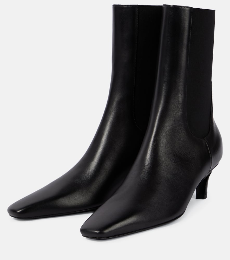 Upper: leather. Lining: leather. Sole: leather insole and sole. Toe shape: square toe. Made in Italy. Includes: shoe box. Designer color name: Black. Closure: elasticated sides. Shop the latest Toteme Chelsea Boots for women now.