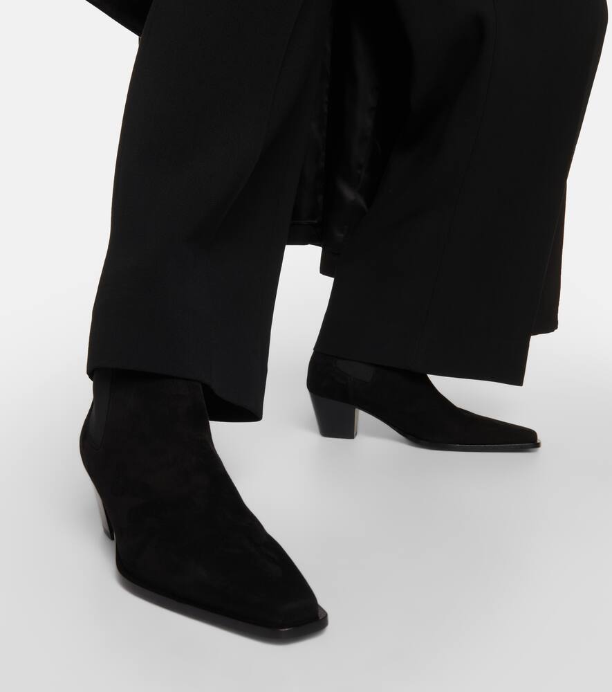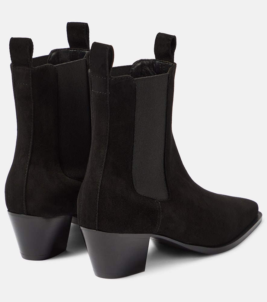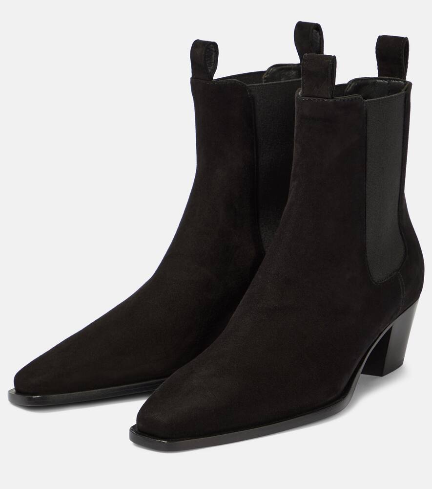 Upper: lamb leather (suede). Lining: leather. Sole: leather insole and sole. Toe shape: pointed toe. Made in Italy. Includes: shoe box, dust bag. Designer color name: Black. Trim: fabric. Closure: elasticated sides. Shop the latest Toteme Chelsea Boots for women now.