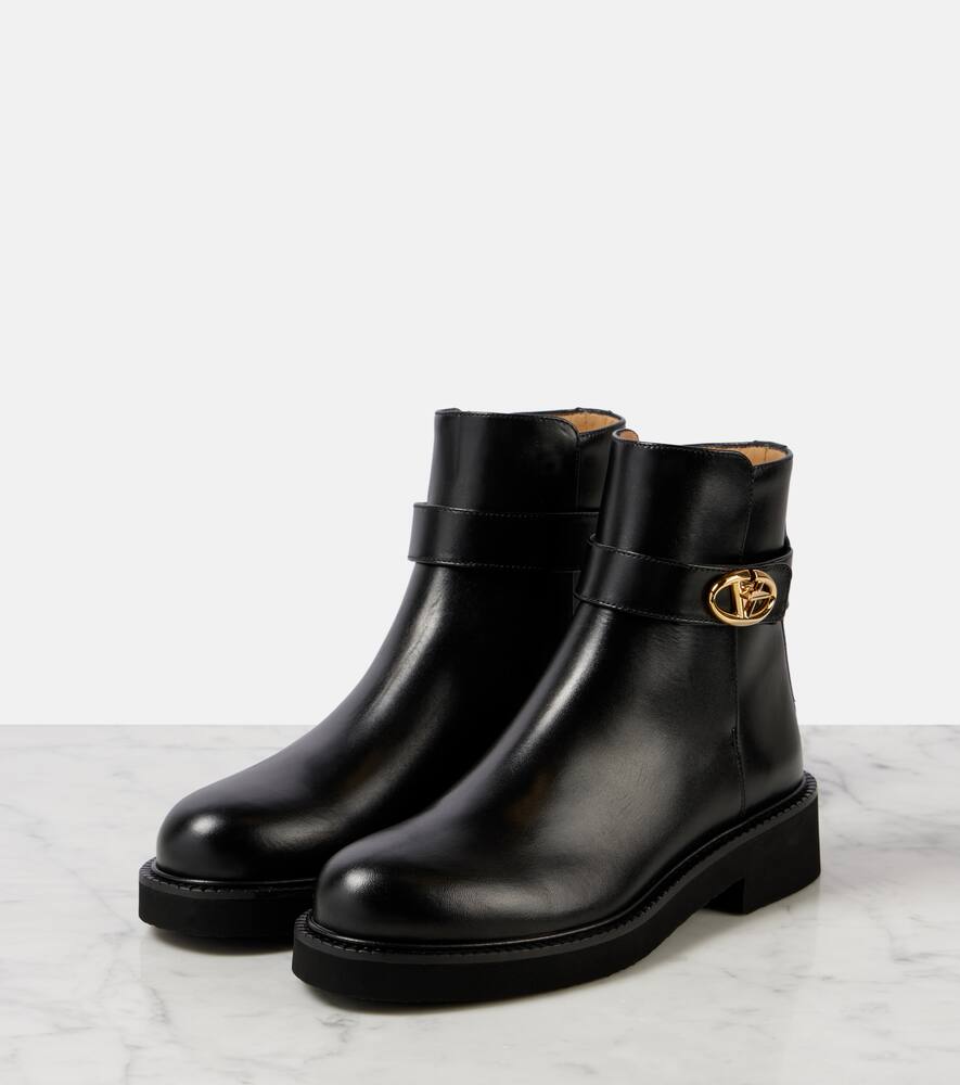 Upper: calf leather. Lining: leather. Sole: leather insole, rubber sole. Toe shape: round toe. Made in Italy. Includes: dust bags, shoe box. Designer color name: Nero. Closure: buckle fastening. Hardware color: antique gold. Shop the latest Valentino Garavani Ankle Boots for women now.