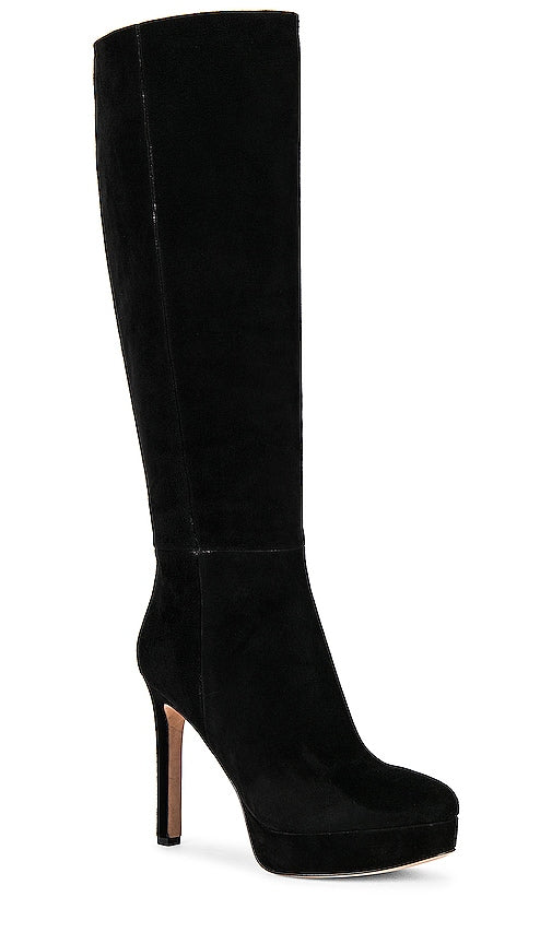 Veronica Beard Dali Boot in Black. - size 7 (also in 9.5) Veronica Beard Dali Boot in Black. - size 7 (also in 9.5) Suede upper with leather sole. Made in China. Partial side zipper closure. Leather footbed and lining. Almond toe with stiletto heel. Approx 115mm/ 4.5 inch heel Approx 406mm/ 16 inch shaft Approx 25mm/ 1 inch platform. VBRD-WZ129. I3635L1. Veronica Beard is an elevated American women's wear brand that strikes a balance between classic chic and laidback cool. Veronica Miele Beard and Veronica Swanson Beard are sisters-in-law who launched their brand together in 2010 with a modern perspective on iconic staples. The brand developed the Dickey Jacket as its first must have piece under the concept of chic uniform dressing. Impeccable tailoring meets superb quality in each of Veronica Beard's cool, effortless pieces. Shop the latest in fashion from Veronica Beard