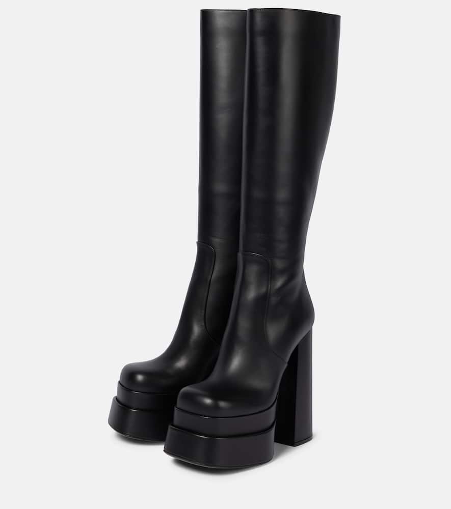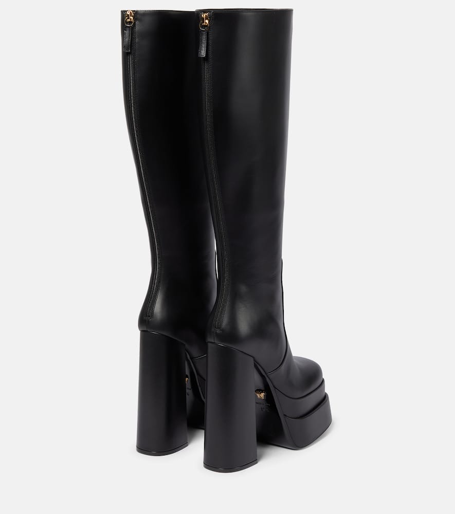 Lining: leather. Upper: calf leather. Sole: leather insole and sole. Toe shape: square toe. Closure: zipped back. Designer color name: Nero-Oro Versace. Made in Italy. Shop the latest Versace High-Heel Boots for women now.
