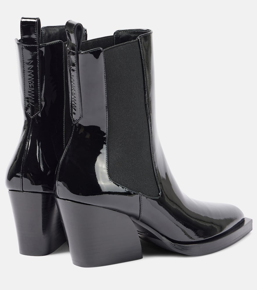 Upper: leather, rubber. Lining: leather. Sole: leather insole, rubber sole. Toe shape: pointed toe. Made in Italy. Includes: shoe box. Designer color name: Black. Shop the latest Zimmermann Chelsea Boots for women now.