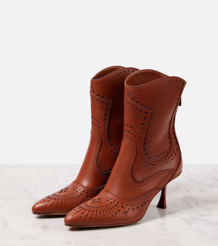 Upper: leather. Lining: leather. Sole: leather insole and sole. Toe shape: pointed toe. Made in Italy. Includes: shoe box, dust bag. Designer color name: Tan. Closure: zipped back. Shop the latest Zimmermann Mid-Heel Boots for women now.