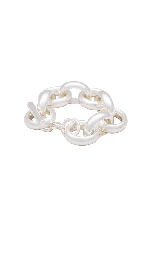 Cult Gaia Delphi Bracelet in Metallic Silver. Cult Gaia Delphi Bracelet in Metallic Silver. Silver-tone brass chain link bracelet. Made in China. Toggle closure. Measures approx 8.25 in length. CULG-WL118. BR3076MT. Founded in 2012 by designer Jasmin Larian, Cult Gaia is a brand that takes art just as serious as fashion: the timeless collection's pieces are crafted as stunning heirloom items made to live in one's wardrobe forever. As an artistic label that designs for the moving eye, Cult Gaia aims to create an effortless visual feast through its intricately designed accessories, such as handbags, hats and jewelry. Shop the latest in fashion from Cult Gaia